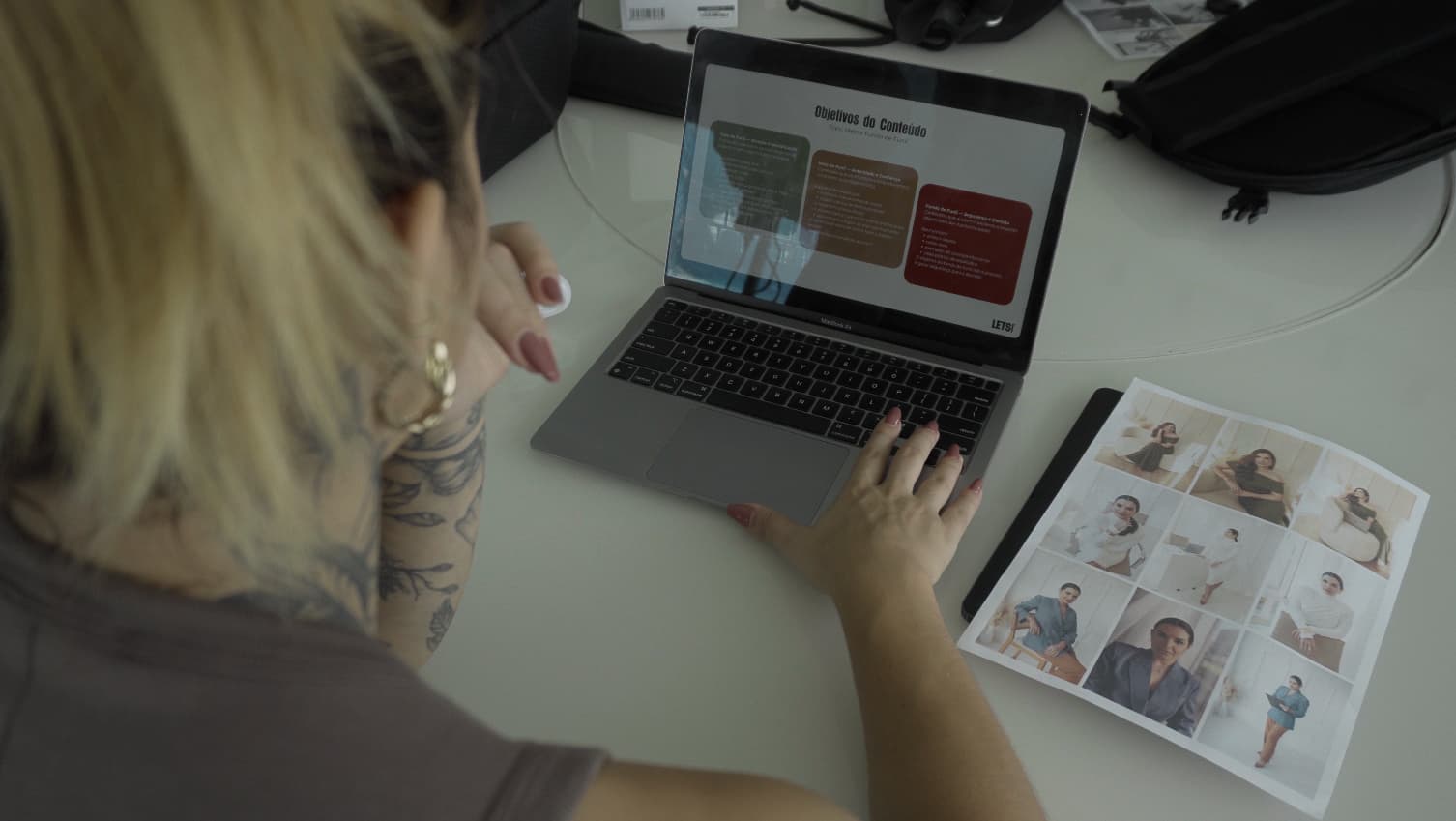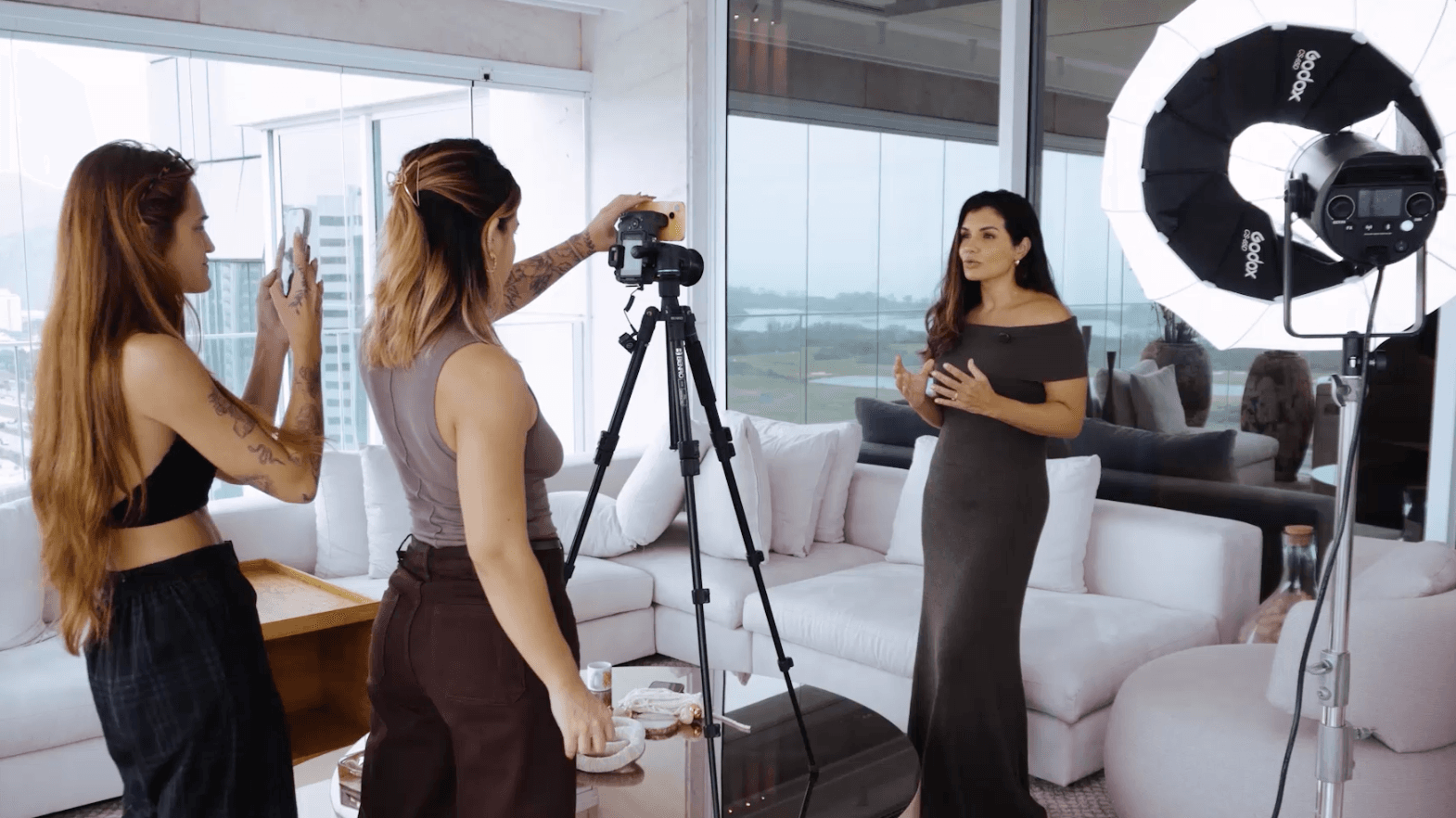 Roteiro, visual e texto com identidade própria. Gravamos com equipe interna, em set profissional. A partir de uma sessão, desdobramos conteúdo para semanas de publicação.